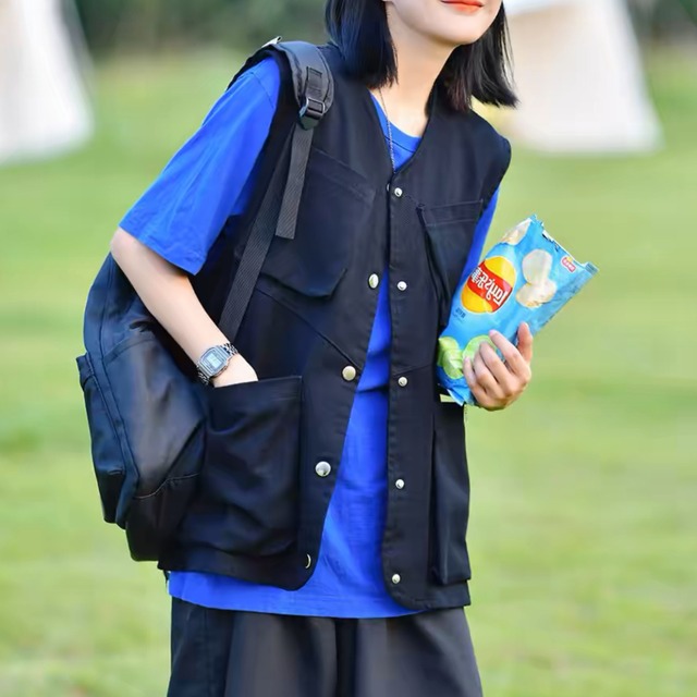 コーデにアクセントを効かせられるアウトドア風ベスト 【サイズ】 M 身長:160-168 体重:95-110 L 身長:165-173 体重:110-130 XL 身長:170-178 体重:130-145 ※採寸方法により1~3cmの誤差がある場合がございます ※モデル 身長170cm 体重50kg Lサイズ着用 【カラー】 ブラック、ベージュ 【素材】 ポリエステル 100% 【お届けについて】 こちらの商品は海外店舗より直接発送となる為、 ご入金から1〜3週間前後で発送致します。 ◼️注意事項 ・タイミングによっては 商品在庫切れにより 注文キャンセルとさせていただく恐れもございますので、 予めご了承くださいませ。 ・こちらは輸入品となります。 日本製とは検品基準が異なる為、新品未使用品でも ごくわずかな汚れや傷がある場合もございます。 ・商品の色味は、お手持ちのスマートフォンの 画面によって実物と若干異なる場合がございます。 ・イメージ違いやサイズ等、お客様都合による交換、 返品、キャンセルは対応出来かねます。 ———————————— ご購入前にこちらをお読みください →https://cattime.official.ec ————————————