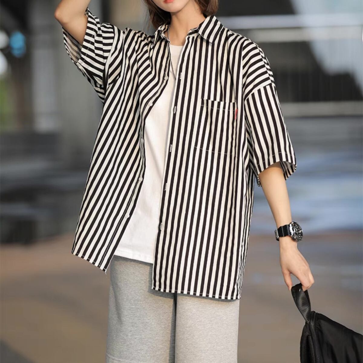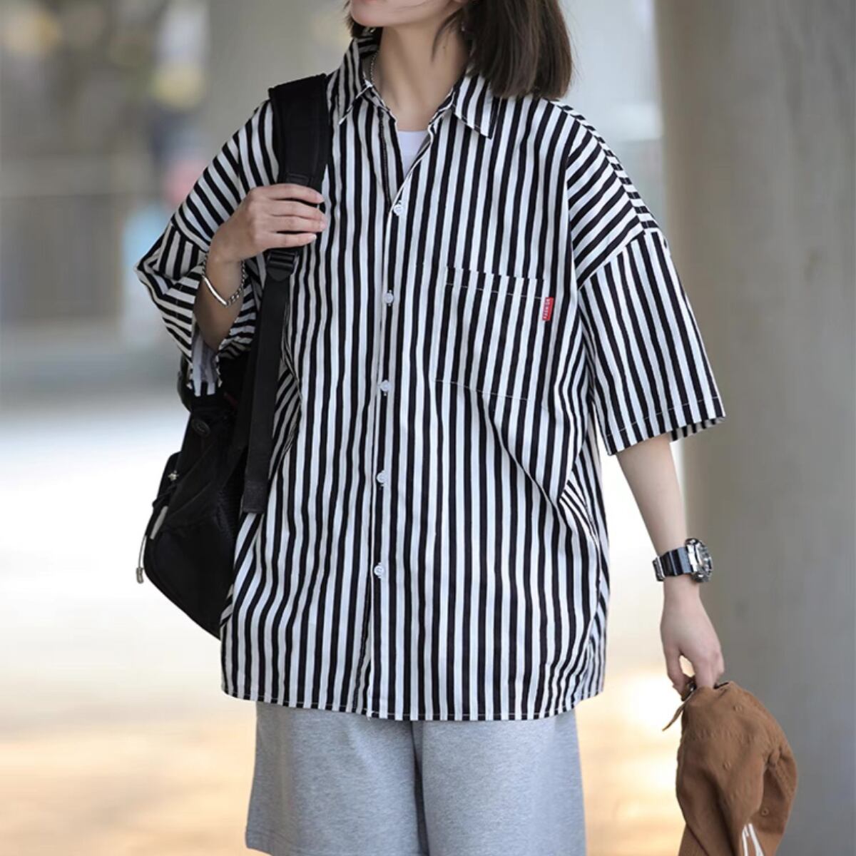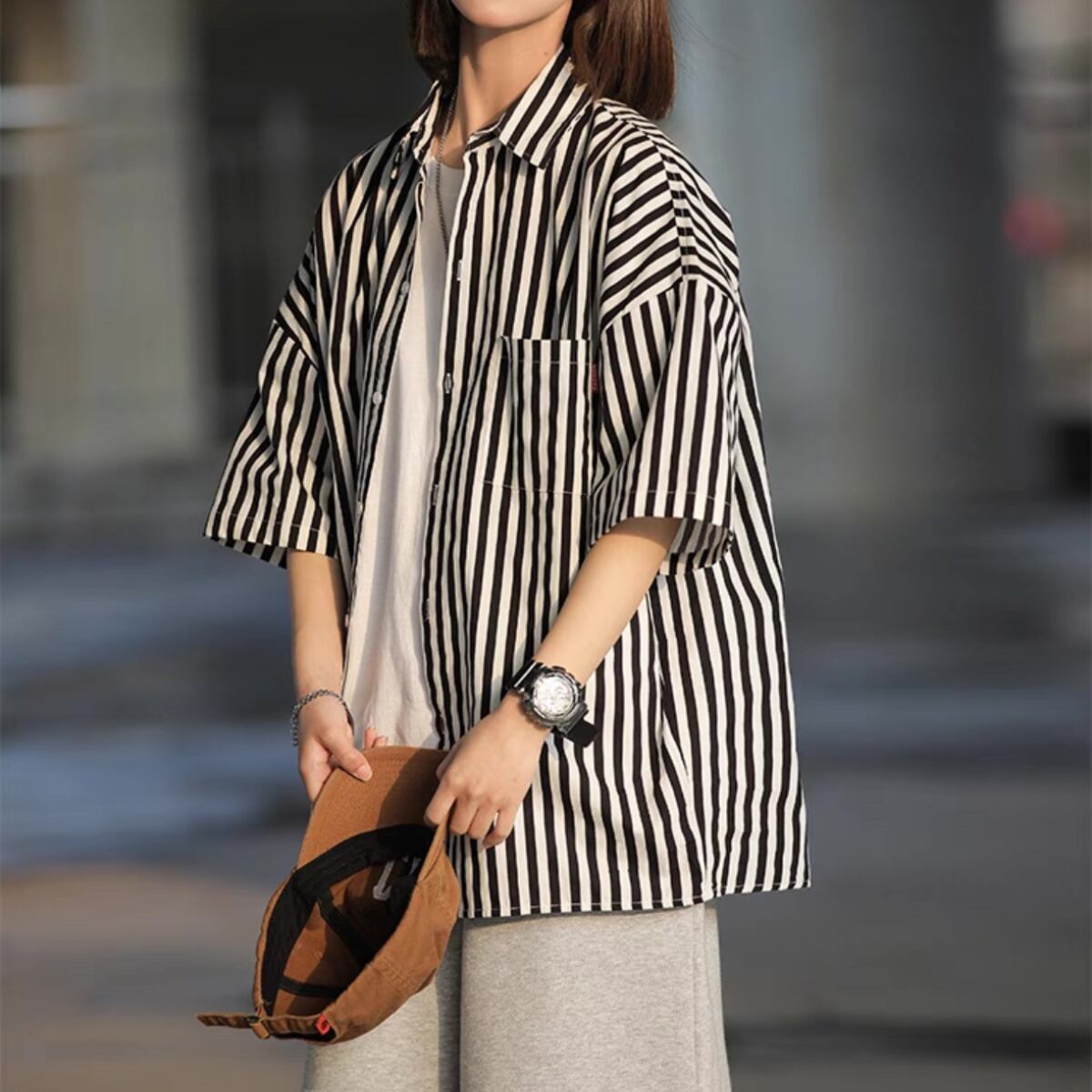 羽織りシャツとしても重宝する半袖ストライプシャツ