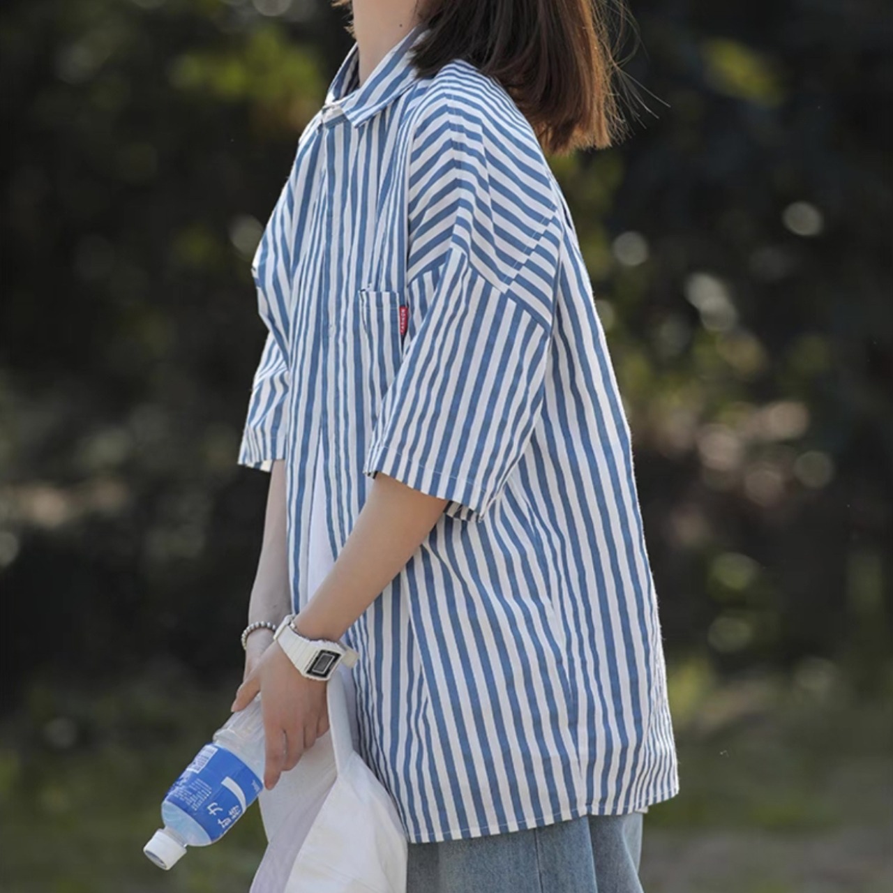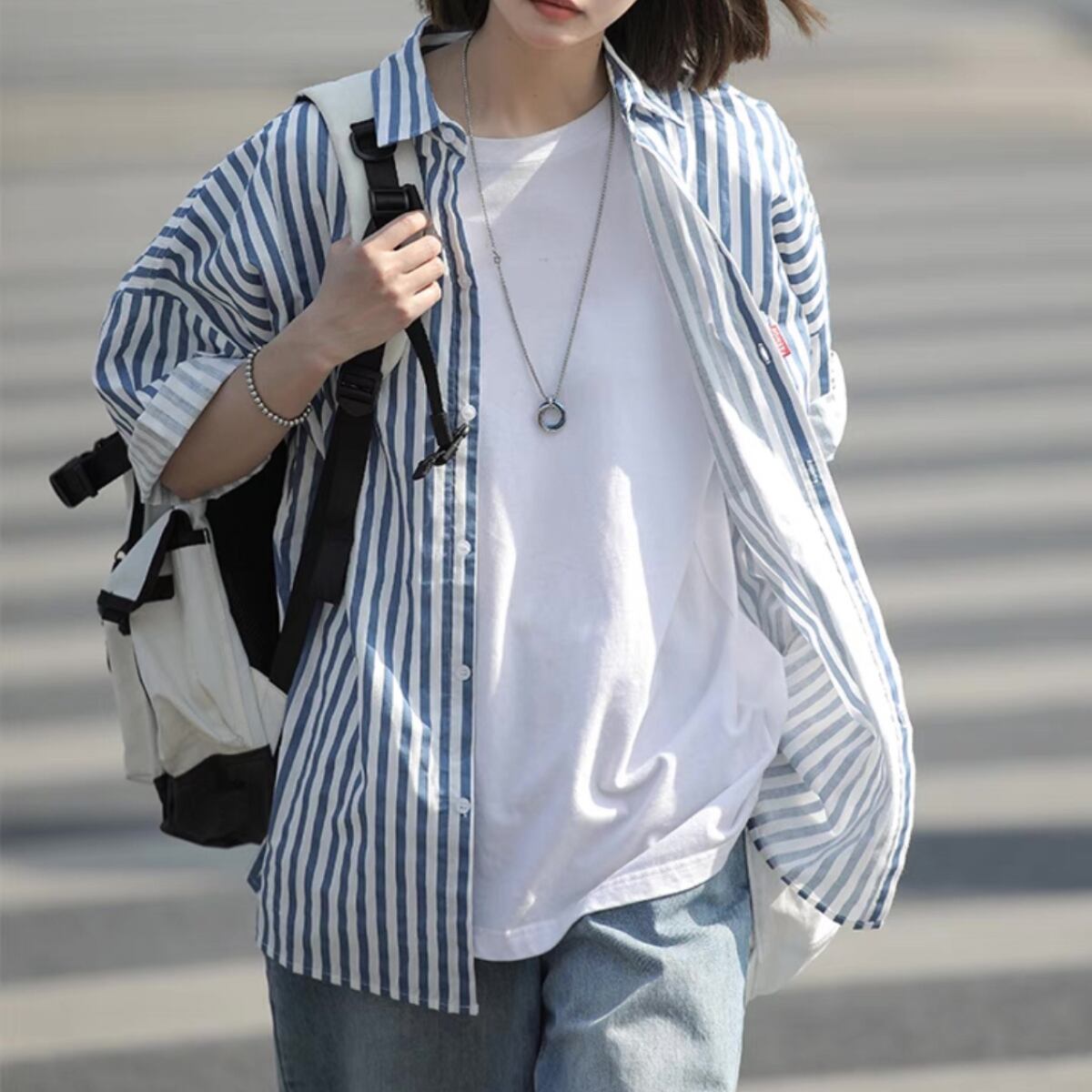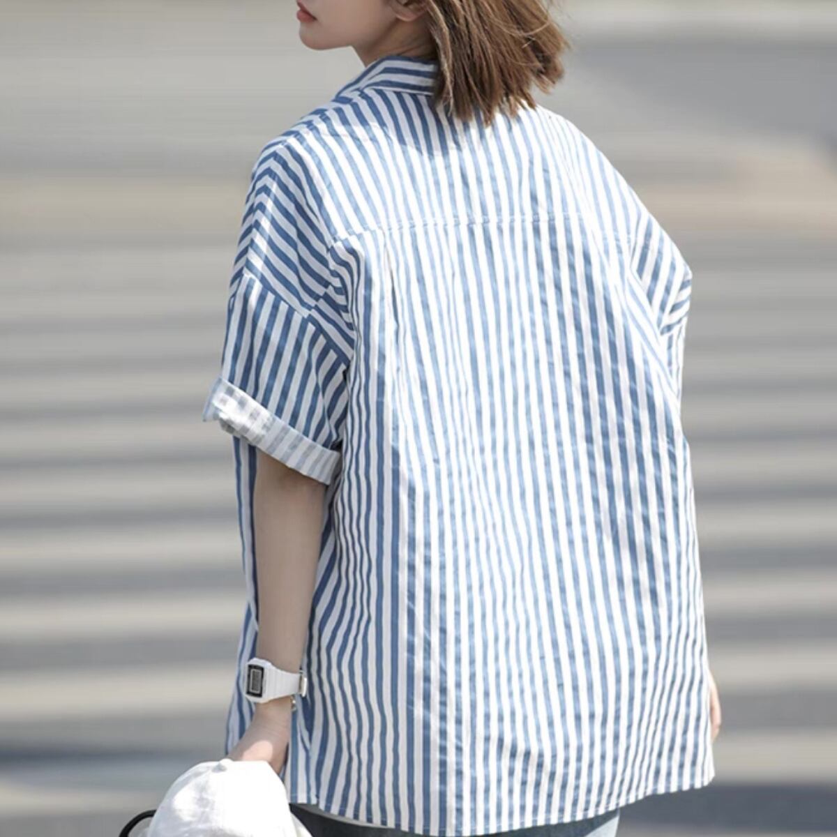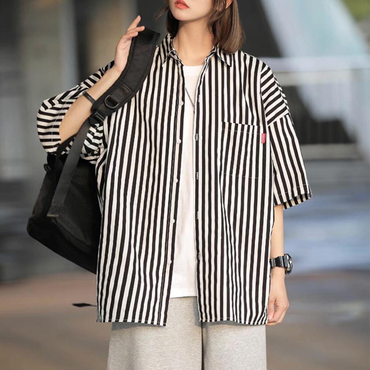 羽織りシャツとしても重宝する半袖ストライプシャツ