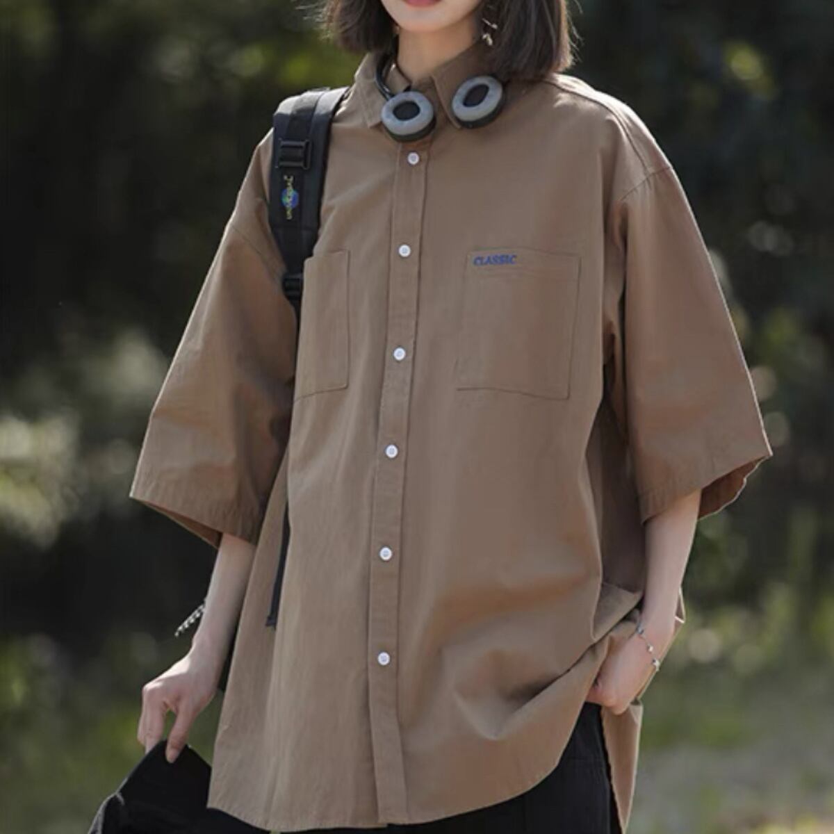 羽織りシャツとしても重宝する半袖襟付きシャツ