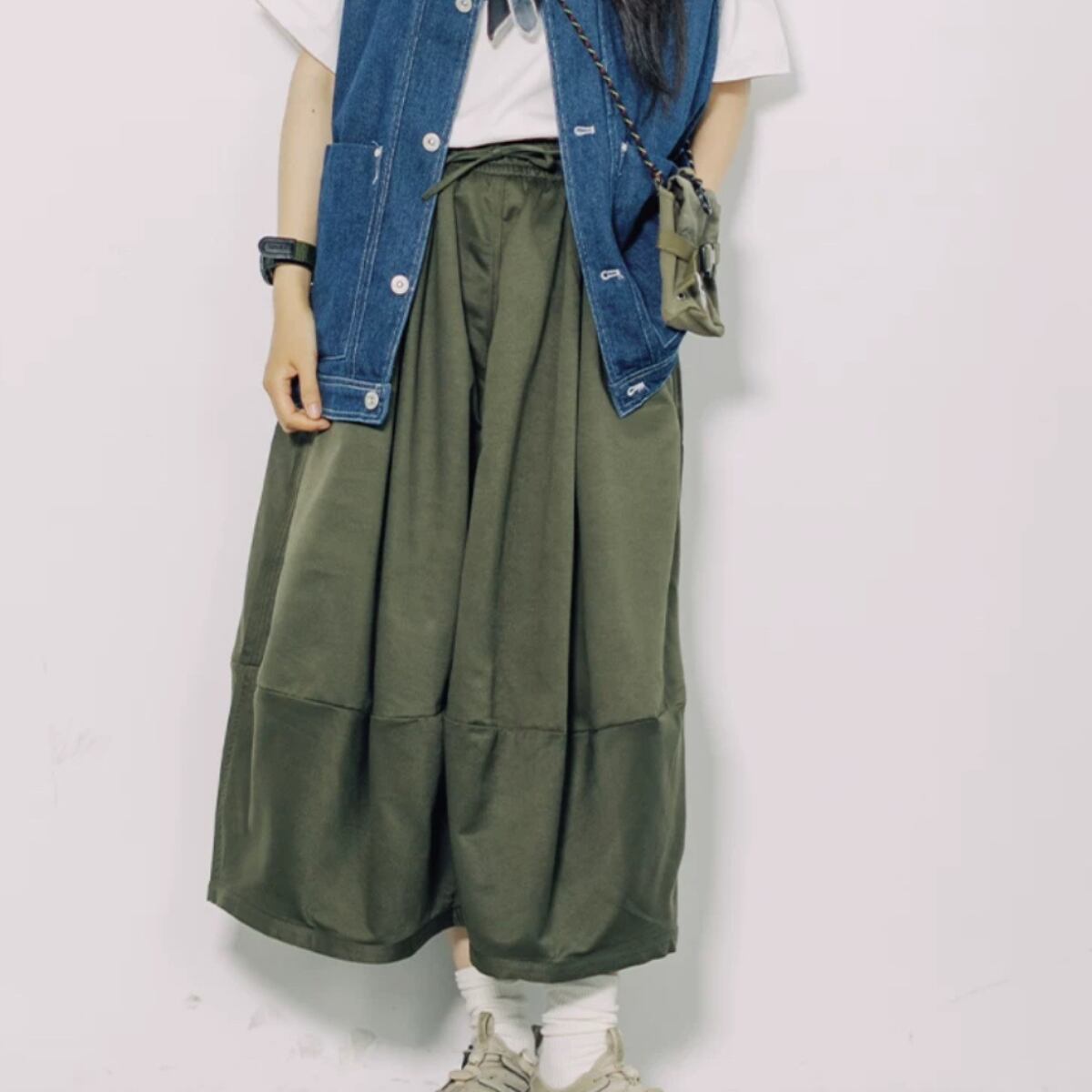丸みのあるシルエットがかわいいロング丈スカートです。