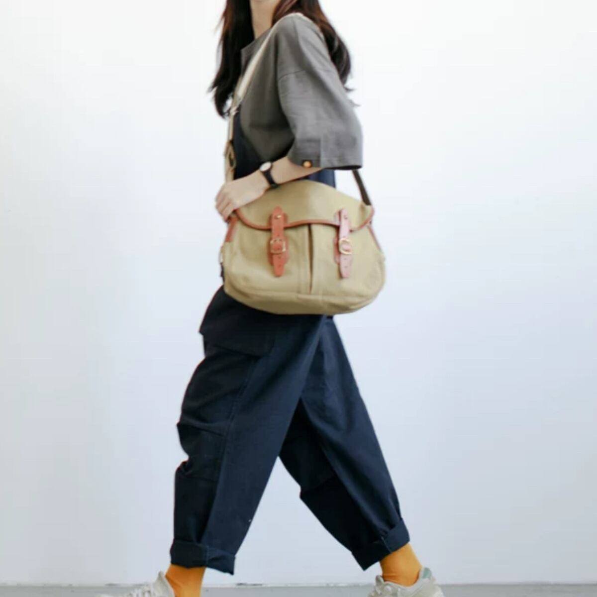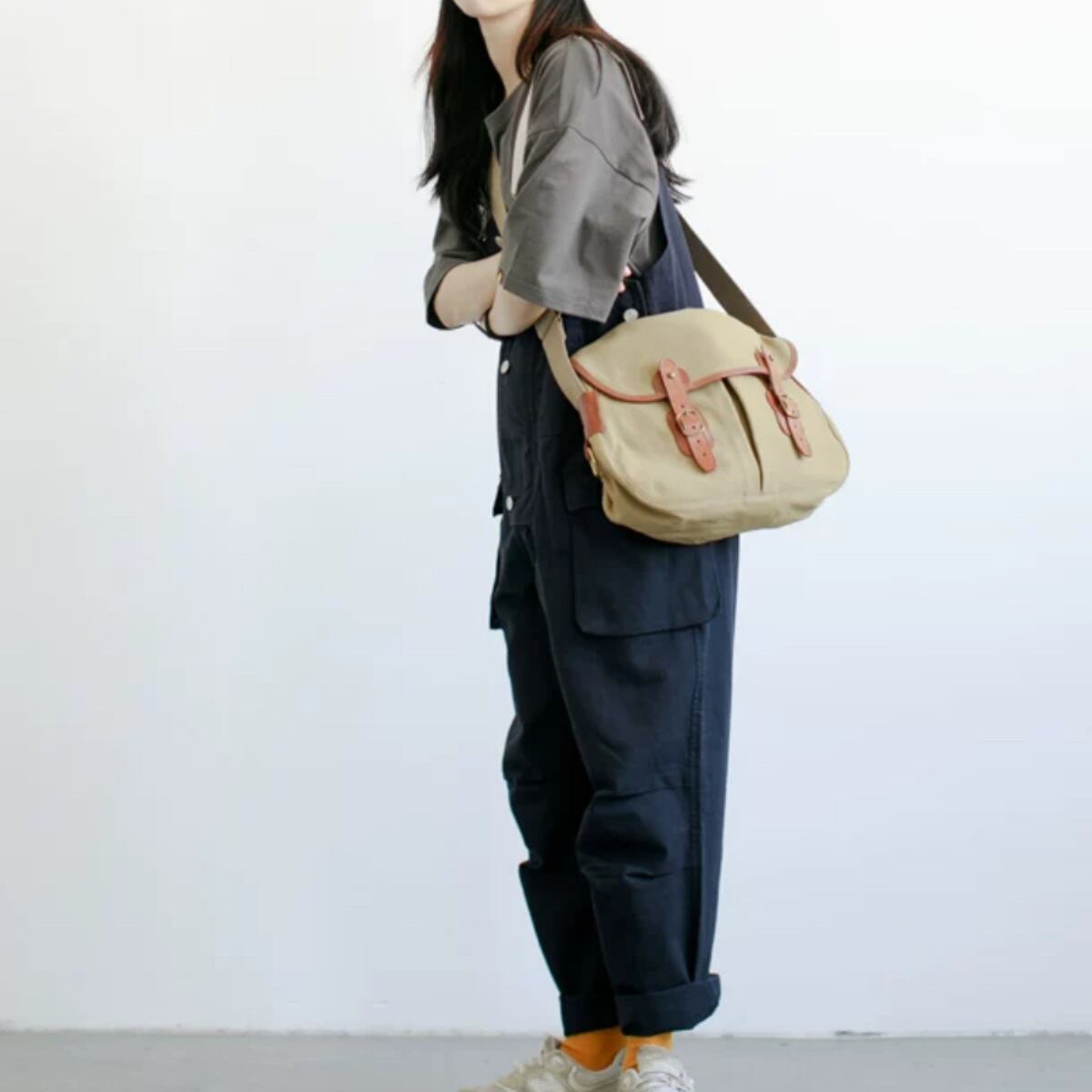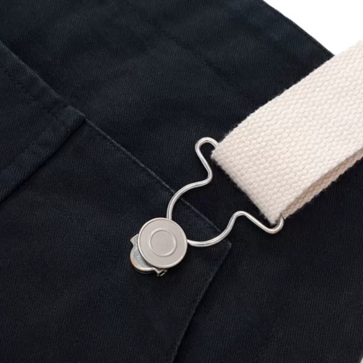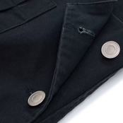 フロント部分にあるボタンがアクセントで、シンプルになりすぎないデザインのオーバーオール。